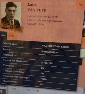 On another database page are listed his "arrest" date (18 Jul 1942); his arrival date at Auschwitz (26 Oct 1942); his father's name (Natan Van Thijn -- it should be Nathan); his mother's name (Sarah Van Beer -- it should be Van Beem).
